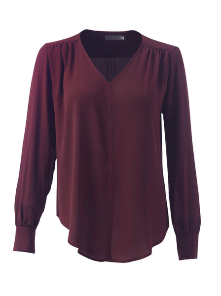 V-neckline ladies long-sleeve blouse